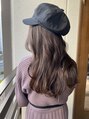 柔らかい透明感のベージュブラウンに顔まわりに重めのレイヤーバングをいれたスタイルです^ ^顔まわりにレイヤーがあるだけで動きが入るので少し巻いただけで雰囲気がでます。