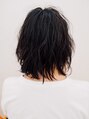 暗髪にポイントでハイライトが入っているレイヤーボブスタイルです。クセを活かしてパーマ風ウェットツヤスタイリング。スタイリングが楽でラフです!クールな雰囲気で見られたい方にオススメです◎前髪に束感を出すのもgoodです!!