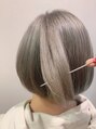 重めのマッシュボブスタイルに、ケアブリーチを2回しっかり抜いて、明るめのグレージュを入れました。(EARTH恵比寿)
