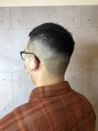 サイド、後ろをしっかり刈り込んだフェードスタイル。