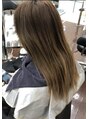 グレージュ系のハイライトデザインベースを暗くしてあるので派手すぎない上品な仕上がりになります。アイロンで巻くとハイライトの動きがとてもいい感じです♪