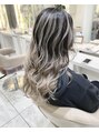 グラデーションからハイライトを繋いでデザインしたバレイヤージュデザイン☆ダブルブリーチで透明感の綺麗なホワイトベージュ☆こちらのカラーにされたい方は是非山崎をご指名下さい!