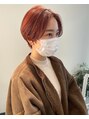 センターパートショート/オレンジカラー/ハイトーンカラー/ホットペッパービューティー