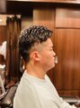 こちらのスタイルはツーブロック3mmでかなり短めのヘアスタイルです!トップ・フロントはアイロンパーマをかけていてセットしやすいようながしています!