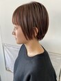 乾かしただけで形がきまるように丸みの少ないカジュアルなショートスタイル、耳にかけたり前髪をピンでとめたアレンジなど色々できます!カラーは1ブリーチしてアプリコットカラーをのせました、発色もよく色々なファッションにも合わせやすいです。