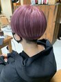 女の子の刈り上げマッシュショートです。カラーはブリーチをしてピンクラベンダーカラーにしました!!