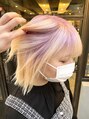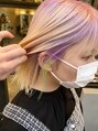 個性派カラー◎根元のリタッチブリーチ後、オンカラー!根元はパープルで、イヤリングカラーに黄緑をいれています◎