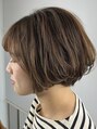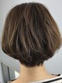 ベースは前下がりグラデーションカット。女性らしい丸みを残した重めのスタイルの中に、襟足のレイヤーーや量感で軽さとスッキリさをプラスしたミニボブ。