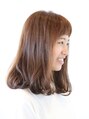カラーはピンク系の中にベージュを混ぜることにより幼くなりすぎない大人なピンクベージュ。バングは眉上に設定して透け感を出し、大人カラーとのギャップを感じさせるシースルーバングにより、幅広く愛されるスタイルです。