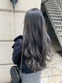 全体をブリーチでフルウィービングにアッシュベージュで赤味をとことん削っています!