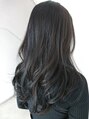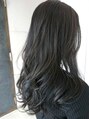 ロングでも重く見せないレイヤースタイル。ダークブルージュで暗いながらも透明感をキープしています。青みの色素量が多いので退色の過程でグレージュ風にも変化して何度も楽しめます。コテ風パーマで柔らかく仕上げました。