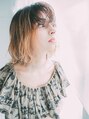 鎖骨あたりで切りそろえたやや前上りワンレングスのミディアムボブ。スタイリングは太めのコテで巻いてクールな雰囲気に。重ためのバングも大きくカールさせ隙間を作りました。グラデーションカラーで根本はあえて地毛の黒にしてコントラストを強調しました。
