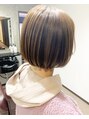 乾かすだけで決まるボブスタイルで外ハネのアレンジも可能です。カラーはベージュ。ケラチントリートメントで指通りも◎