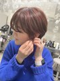 ピンクオレンジのショートスタイル耳にかけてもかわいっす◎