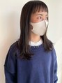 ぱつっと切ったショートバングがかわいいロングスタイル。全然の長さがあるので、幼くなりすぎず、オシャレな印象に。カラーは柔らかいグレージュで少し大人っぽく。