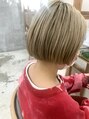 今回はカットでメンテナンス。すこし毛先を揃えてカットするだけでラインがきれいに整います。首元は、内側を短くして毛先がおさまりやすくなるようにします。ハイトーンのカラーとの相性も良し。ミニマムなボブの完成です。