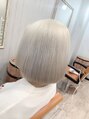 ホワイトミルクティーカブリーチダブルカラー切りっぱなしボブ