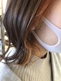 カットは軽めのワンレングスに仕上げて全体のカラーは落ち着き目のベージュ系にしてインナーカラーはオレンジ系で遊びとオシャレ感をプラスしました。