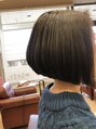 年齢問わずオーダーの多い前下がりボブですが、ボリューム感を持たせることで女性らしいフォルムに仕上げてあります。お手入れ楽な襟足ギリのボブ!カラーは艶出し効果の高い8Lvブラウン