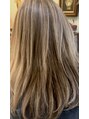 3Dハイライト地毛に馴染みの良いトーンをベースに流れる様なハイライトスタイル毛流や分け目によってハイライトの表情が変化