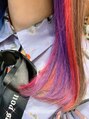左右、違うインナーカラーを入れて個性のあるカラーになります(^^)お顔周りは姫カットをしております(^^)こちらのカラーは1度ブリーチが必要となりますがご希望のお色によって2回必要となります。