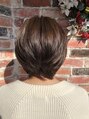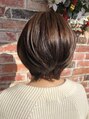 顎ラインより少し長めの前下がりショートスタイルです。カラーはアッシュパープルで室内だと落ち着いた雰囲気になります。