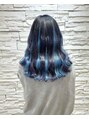 スカイブルーのメッシュを数枚入れるだけで、他の方と差をつけるお洒落ヘア★ブルーブラックとの相性抜群!