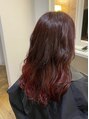 根元から中間は、 #フュージョニストカラー #フュージョニスト で、暗めでも鮮やかなお色に 毛先は、明るく退色したベースに #カラーミューズ でビビットな赤にお仕事の時は、毛先をまとめて、プライベートでは、毛先を遊ばせて