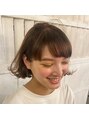柔らかく毛先にワンカールのパーマと、全体に細かくハイライトを入れたボブ。優しい印象に。