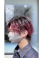 ブリーチした上から塩基性(ノンダメージ)のカラーをオンしました!発色、ダメージをなくしたい、色持ちを優先してカラーを調合しました♪人とは違う個性が出てかわいいですね!
