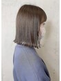肩上のきりっぱなしボブぱつっとカットラインが見える人気スタイルです。ばっさりカットのオーダーが増えています!イメチェンにぴったり!前下がりボブ、小顔ボブぜひご相談ください♪あなたにあった長さやシルエットに!カラーはオリーブミルクベージュ♪
