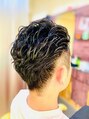 ルーズバックに立体的な動きが出るようにスパイラルパーマをON!メリハリとスッキリ感もアップするようにサイドは短くツーブロック。ネープは刈上げ。簡単スタイリングのスッキリしたスタイルが希望の方にはオススメ!ちょっとワイルドな印象も男前です。