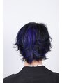 ブリーチでかなり明るくなっていた毛にほぼ黒に見えるようなダークシルバーを入れ、メッシュでバイオレットをランダムに入れたカッコイイヘア!!
