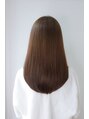 カットは内巻きになりやすいようにやや前上がりでカット。まとまりのいい重めのストレートスタイル