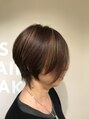 フロントが長めのショートレイヤーハイライトとピンクのカラーをいれています。