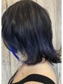 一回ブリーチで透明感のあるネイビーカラーポイントでエクステメッシュでアクセント