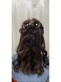 髪がほそいのでトップのボリュームを出す為、ウェーブを根本から入れてゆるふぁに引き出します。お顔に華やかさをだすためサイドの後れ毛をミックスウェーブにさせて頂きました。
