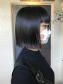 パツっとモードなボブスタイルラインの出し方、厚み、角度など、絶妙に似合わせていきます。