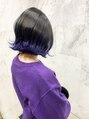 毛先に派手色をのせたインパクトのあるヘアカラー♪今回は濃いめのブルーバイオレット☆色落ちしていくと、ブルーを経由してグリーンに落ち着きます。様々な色を楽しめます♪