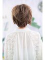 洗いっぱなしのように、ふわくしゅっとラフに仕上げたエアリーショート。健康的な大人ショートに、ベージュカラーとちょいハネでガーリーな可愛さをプラス。目力UP効果のある長めの前髪は、うざバングにしても、サイドにキリッと流して斜めバングにしてもOK♪