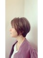 お白髪をハイライトキャップでブリーチし、その後にベージュ系のカラーを使用しています。お白髪を明るく立体的に見せるカラー方法でブリーチですが、手触りも良く、全くダメージがない状態です。