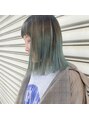 切りっぱなしたロブとブルーグリーンのペールカラー◎淡く柔らかいインパクトのあるカラーは目を引きます*