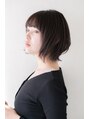肩につかない丸みのある前下がりショートボブ。顔周りには頬骨からアゴ下にかけて毛先が輪郭を覆います。耳掛けしても可愛い!写真のようにアイロンで外に1カール作るだけでボブの雰囲気が変わります。透け感のあるダークアッシュで暗髪でも重くありません☆