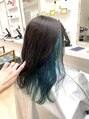 インナー部分を1回ブリーチ。グリーンカラーをオン♪