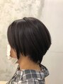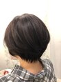 頭の形が丸くみえるショートボブです。顎の延長線上にボリュームがくるようにカットしています。首元になじむように毛先は柔らかく。