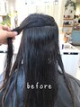 半年前に縮毛矯正をかけたお客様。根元のクセが強く、そしてダメージしやすい髪質。ダメージを与えないようにパワー弱めの薬剤を25分ほどかけて髪に浸透させて縮毛矯正をかけました。ゆっくり浸透させる事でなめらかな手ざわりになりダメージも軽減できます。