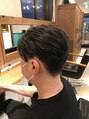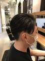 サイドは3ミリで2ブロックで、襟足は6ミリでグラデーションに繋げました。前髪はサイドパートで耳は出る位の長さです。ブリーチでハイライトをランダムに入れ、上からアッシュで黄色味をおさえました。