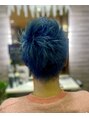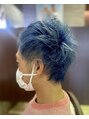 メンズのブリーチカラー。根本濃いめのカラーで陰影をつけたブルーアッシュです。