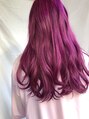 ブリーチ後ピンクとパープルの間の絶妙な色を作りました。透明感もありかわいいヘアカラーです。