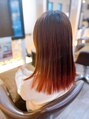 カットは長さを変えず毛先 手触りなどをキレイにするメンテナンスカットで、トリートメントをしたような手触りに。カラーは一度ブリーチの後 キャロットオレンジをのせてます。めちゃくちゃ綺麗で喜んでもらえました、ええ感じ^ - ^